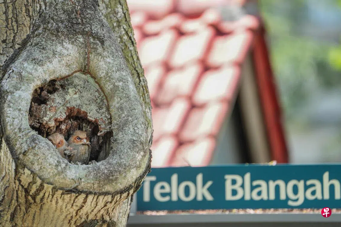 直落布兰雅坡(Telok Blangah Rise)第29座组屋和巴士站之间一棵树的树洞里近日多了一家“新住户”,从早到晚都有公众慕名来探访。原来,该树洞出现了两只巽他领角鸮(Sunda Scops Owl)雏鸟,消息一传出,大批摄影爱好者从星期天(5日)开始就蜂拥而至。