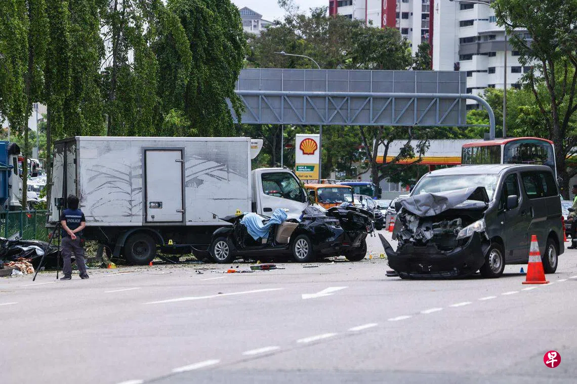 这起车祸发生在2023年7月7日上午约10时零5分,地点在朝罗尼路方向的汤申路上段,靠近麦里芝高架桥。一辆罗厘冲过路中央分界堤,与对向车道的一辆汽车、一辆货车和一辆私人巴士相撞。