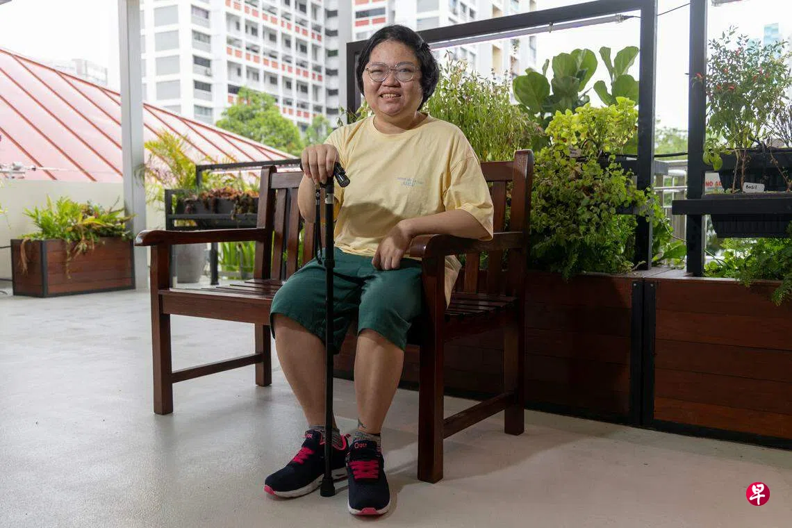 持续复健让一家三口看见了希望,廖修俐的活动能力明显恢复,她终于可以站立,依靠拐杖行走,还能独自搭巴士到医院进行复健。