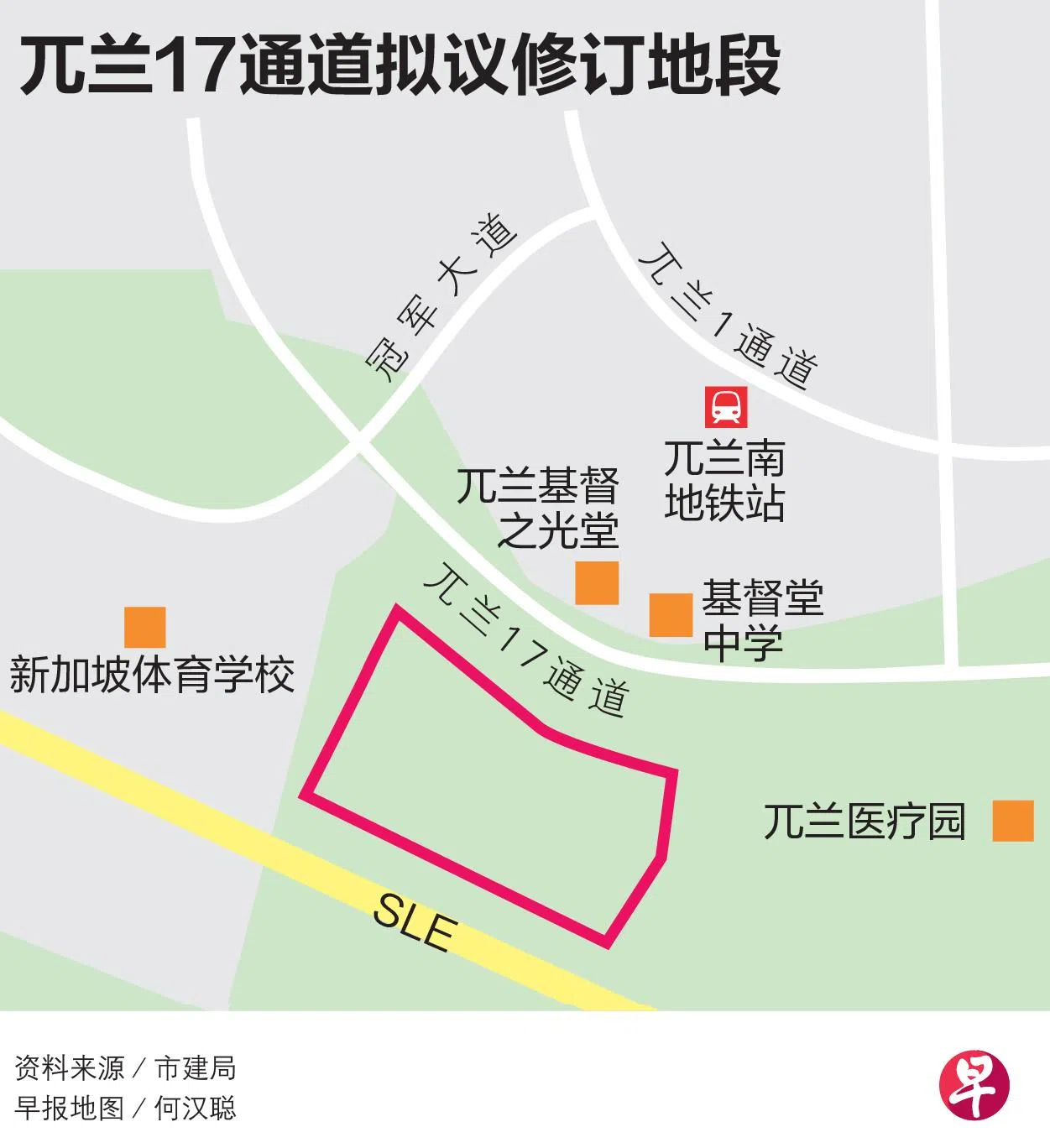 市建局日前在官网上公布对2019年发展总蓝图的修订建议,将兀兰17通道(Woodlands Drive 17)旁一块原先已划为住宅用地的地段,设定1.7的住宅总容积率。当局也拟议将那里的一条马路改为住宅用地,总容积率同样是1.7。