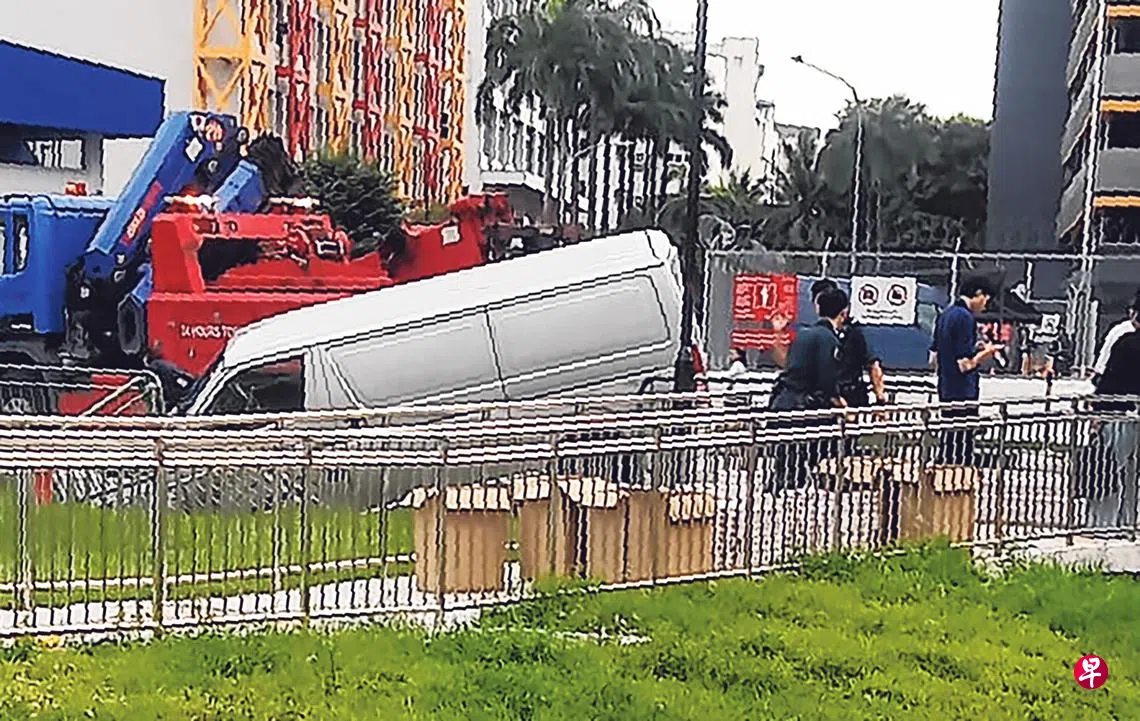 读者通知《新明日报》,他星期天下午5时许经过时,发现一辆货车冲入水沟,当时已有警员到场。
