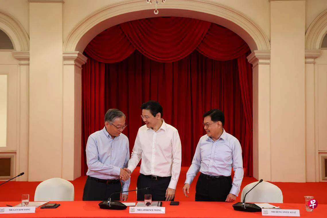 我国第三次总理交棒进入最后阶段。李显龙总理星期一向尚达曼总统递交他和整个政府的正式辞呈,尚达曼接受辞呈后根据李总理的建议,委任副总理兼财政部长黄循财为下一任总理,并邀请对方组织新的内阁。