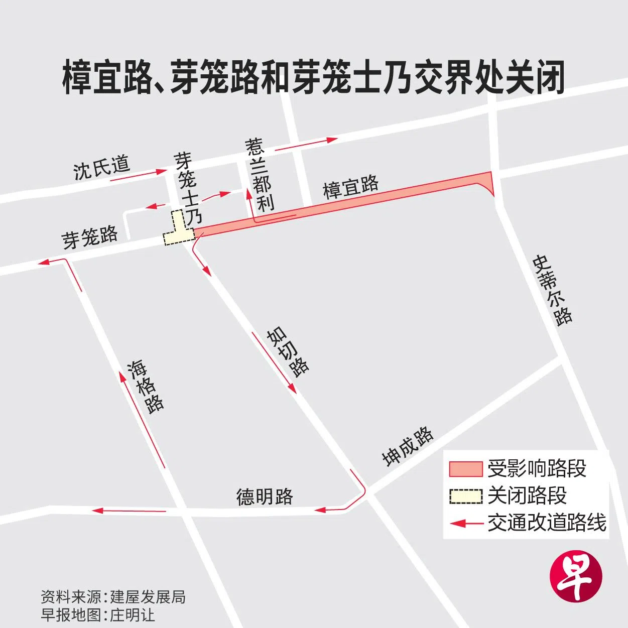 芽笼士乃大厦和芽笼士乃巴刹之间的交界处将兴建一道拱门。为方便施工,这个路口将在5月23日至29日的特定时段关闭,车子届时必须改道。
