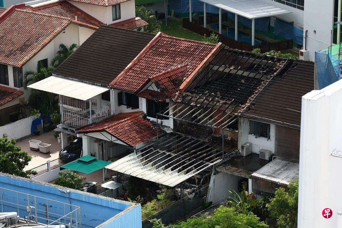 加东一所排屋失火狂烧后损毁严重,还波及毗邻单位。新加坡建设局将整个失火单位,以及毗邻两单位的二楼列为危楼,发出封闭令。