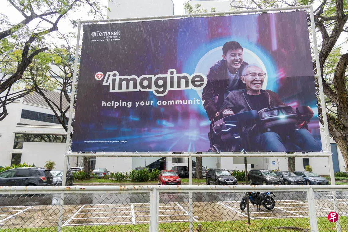 淡马锡理工学院近期就推出一系列宣传广告,年龄各异的人物在科幻背景的衬托下显得栩栩如生。人们如果没看到左下角的声明,或许不会想到这是AI根据提示(prompts),所生成出来的图像。