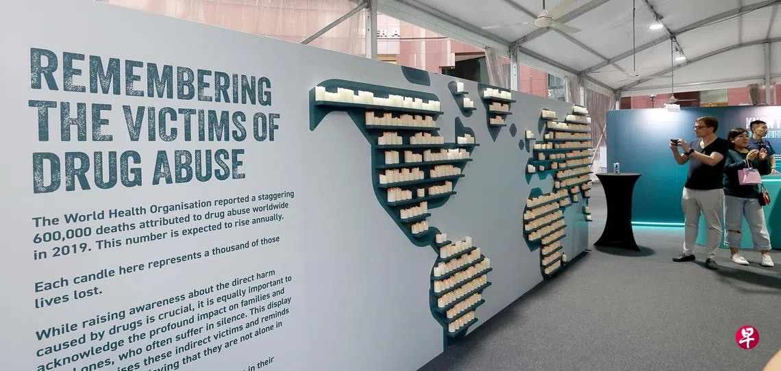 内政部长兼律政部长尚穆根在活动上亲手将LED蜡烛,摆放在绘有世界地图的烛光墙上,悼念本地乃至全球死于毒品的人。世界卫生组织的数据显示,单是在2019年,全球就有60万人因嗜毒而丧命。