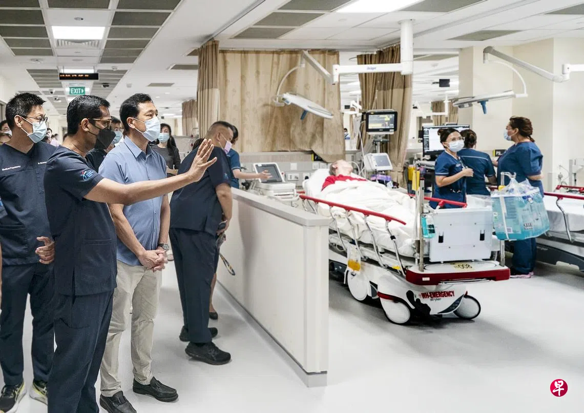 卫生部长王乙康星期五(5月17日)走访即将在下半年正式开幕的兀兰医疗园区(Woodlands Health Campus),他参观了已经投入运作的急诊部门、手术室,以及综合急症和社区医疗病房。