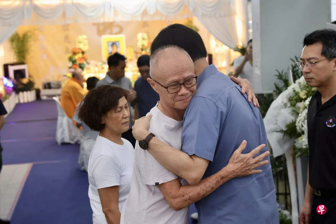 星期六(5月18日)下午约4时零6分,天空下着细雨,交通部长兼财政部第二部长徐芳达在新加坡民防部队副总监(行动与应变能力)林仰恩的陪同下到灵堂吊唁。死者的母亲在与部长交谈时难掩悲痛之情,流下眼泪。