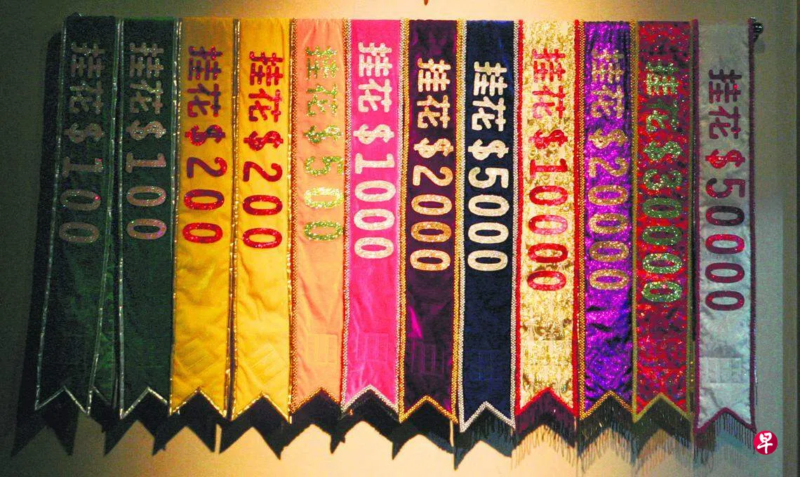 一般上,夜店的顾客若想打赏艺人,可以告知员工想要打赏的数额,如30元、50元、100元、200元、1000元、2000元和3000元。不同的花带代表不同价位,顾客按自己想要打赏的数额付钱,夜店便会在收钱后开收据给顾客,收据上列明所支付的费用包含7%消费税。
