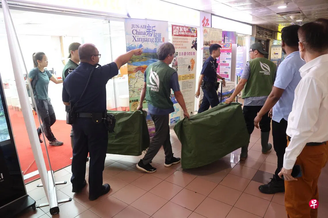 《新明日报》星期二(5月21日)报道,三只水獭星期一下午4时许,在牛车水珍珠大厦(People’s Park Centre)闲逛,引起一阵骚动。最终在公园局人员的协助下成功抓捕带离现场。