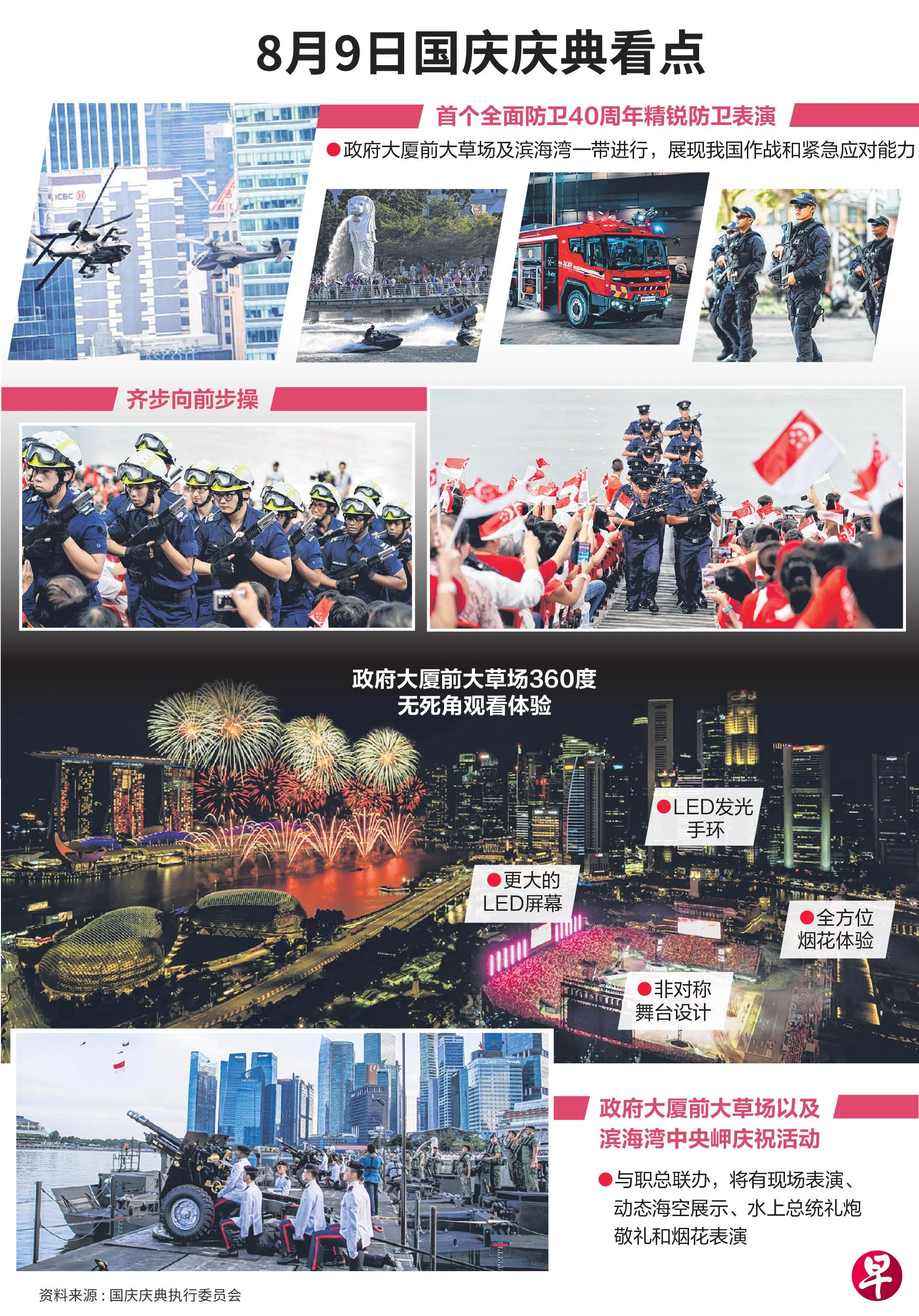 我国今年庆祝独立59周年,今年的庆典主题是“全民一心,团结⼀致”(Together, As One United People)。除了庆典表演,国人也能在8月9日前后,参加一系列国庆活动,举国同乐。
