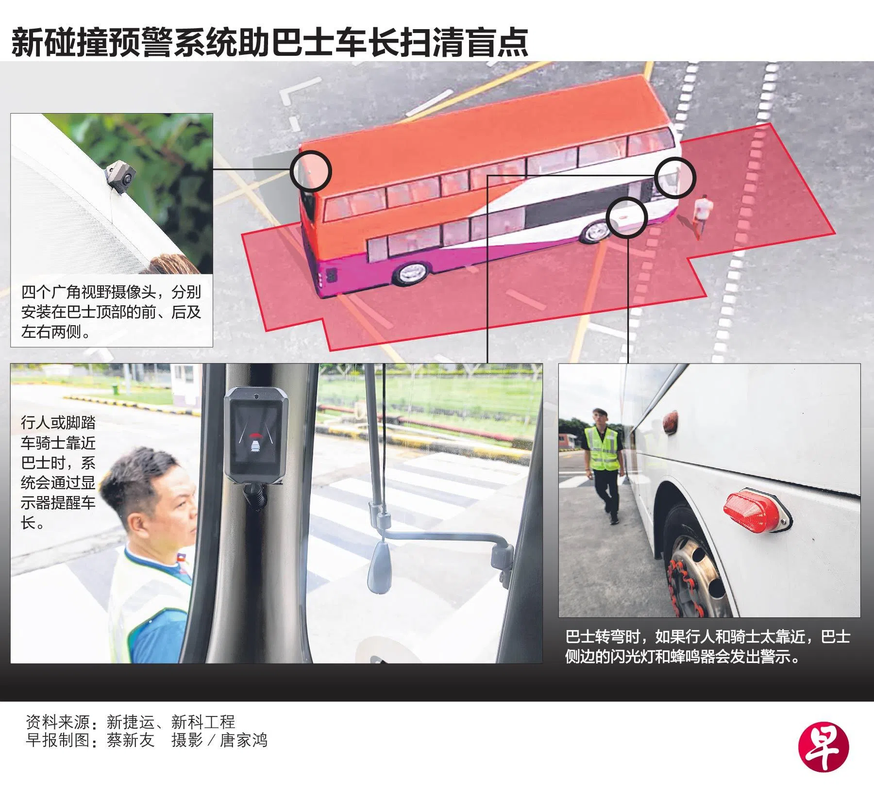 新捷运推出一项试行计划,在巴士上安装新的碰撞预警系统,协助巴士车长在驾驶时注意盲点,避免与行人和脚踏车骑士等发生碰撞。