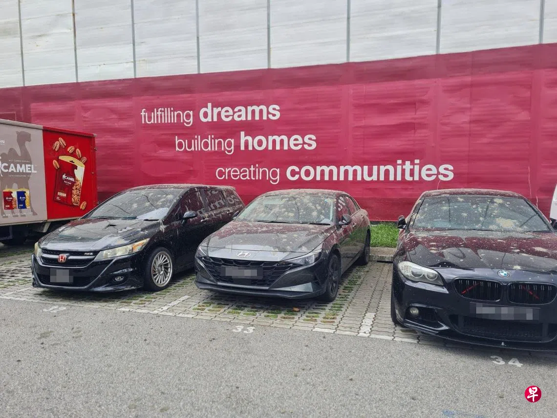 裕廊西92街预购组屋的工地,竟有水泥和石块从天而降,砸中三辆轿车以及一名车主,情景骇人。