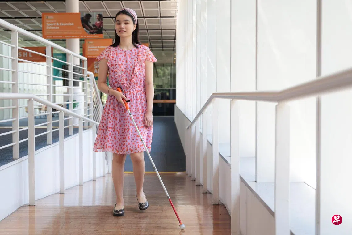 潘燕珍就读理工院时修读保健促进与管理,去年在新加坡导盲犬协会实习,指导其他视障者使用辅助科技,并策划活动。在学习路上,她也靠文字转语音等辅助科技和自身的毅力,完成大专教育。