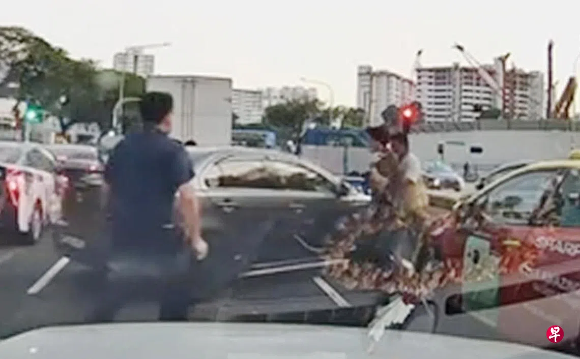 根据Singapore Road Accident脸书网页贴出的视频显示,当时数辆车停在交通灯前,一名身穿浅绿色上衣的男公众从车上跑下来,走到前方一辆黑灰色的三菱轿车前比手画脚,跟着要求三菱前方和两旁的轿车与小罗厘先不要开走,欲困住三菱驾驶员,不让他开走。