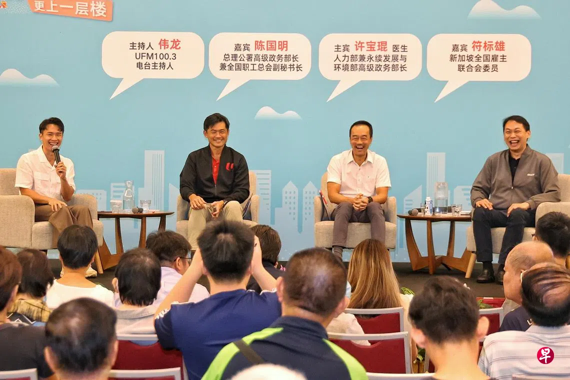这场主题为“好好谈一谈之扶助低收入工友更上一层楼”的对话会在报业中心举行,共吸引130人出席。除了许宝琨和陈国明,新加坡全国雇主联合会委员符标雄也参与对话,并解答公众的提问。活动由UFM100.3电台主持人刘伟龙主持。