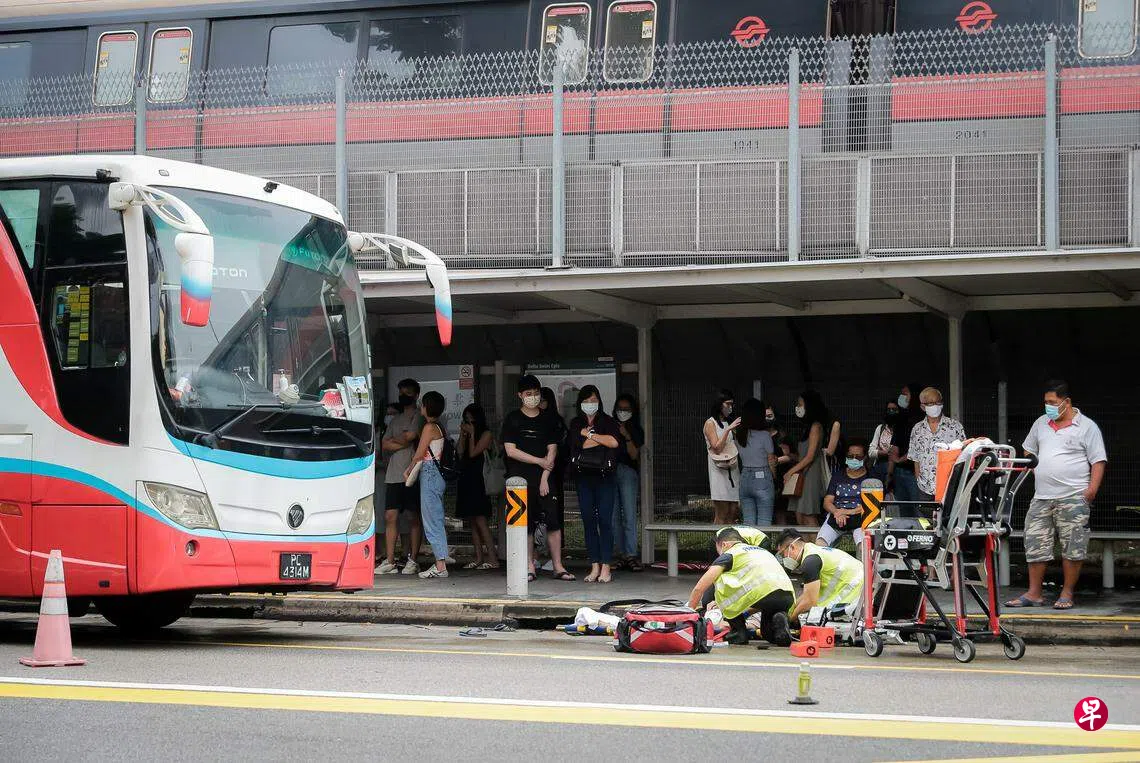 这起致命车祸发生于2022年8月29日早上10时许,地点是朝往欧南路的中峇鲁路一带,靠近红山地铁站的一个巴士站前。不幸丧命的是80岁的老妇陈亚华。