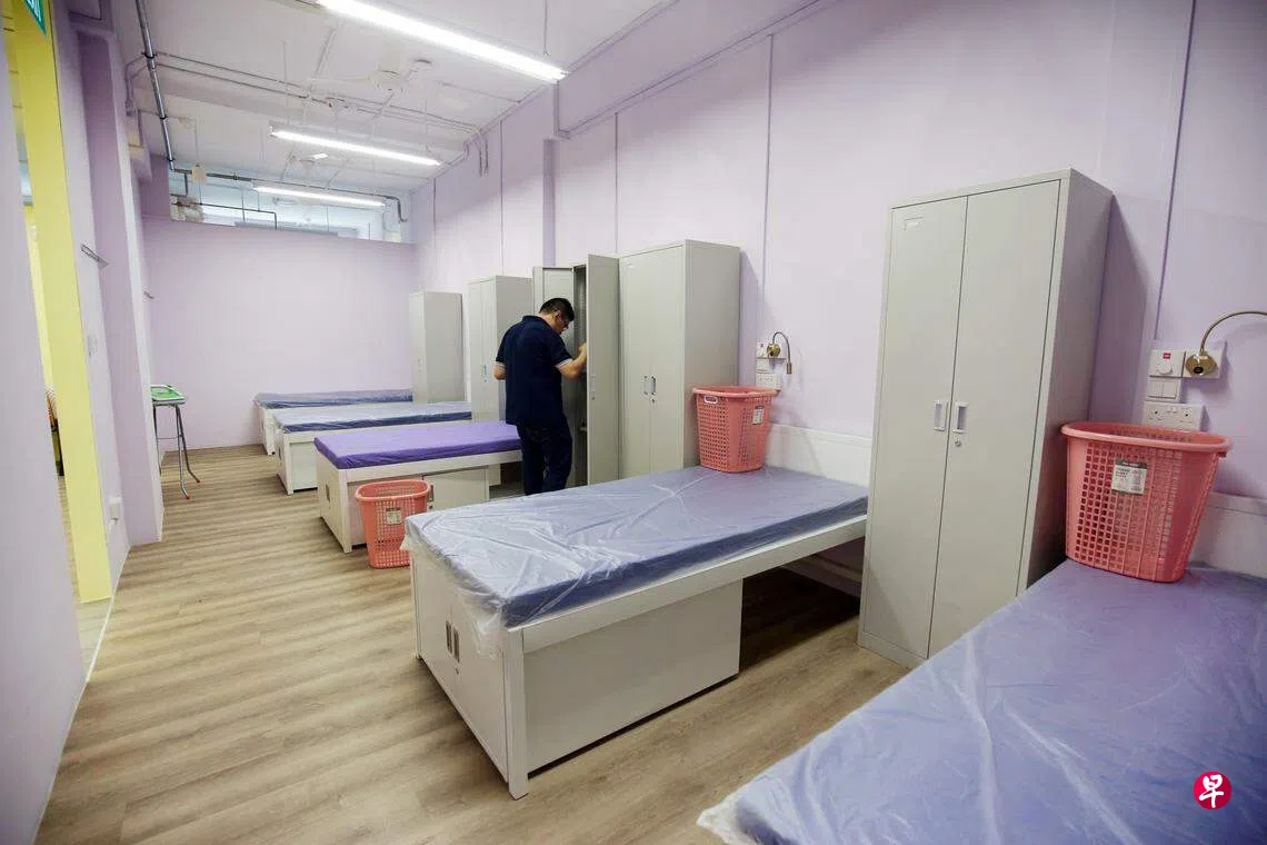 这些独立的居住单元位于组屋楼下,翻新后的宿舍包括五个住房单元,每个单元设有九到11张床位。目前宿舍共有24位患者,未来还将继续接收新的患者。
