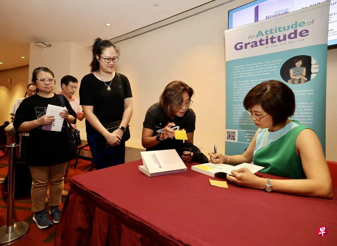 苏惠兰星期六也在南艺实验剧场(NAFA Studio Theatre),为去年9月出版、她撰写的英文回忆录“An Attitude of Gratitude”(感恩之态),举办了分享会。