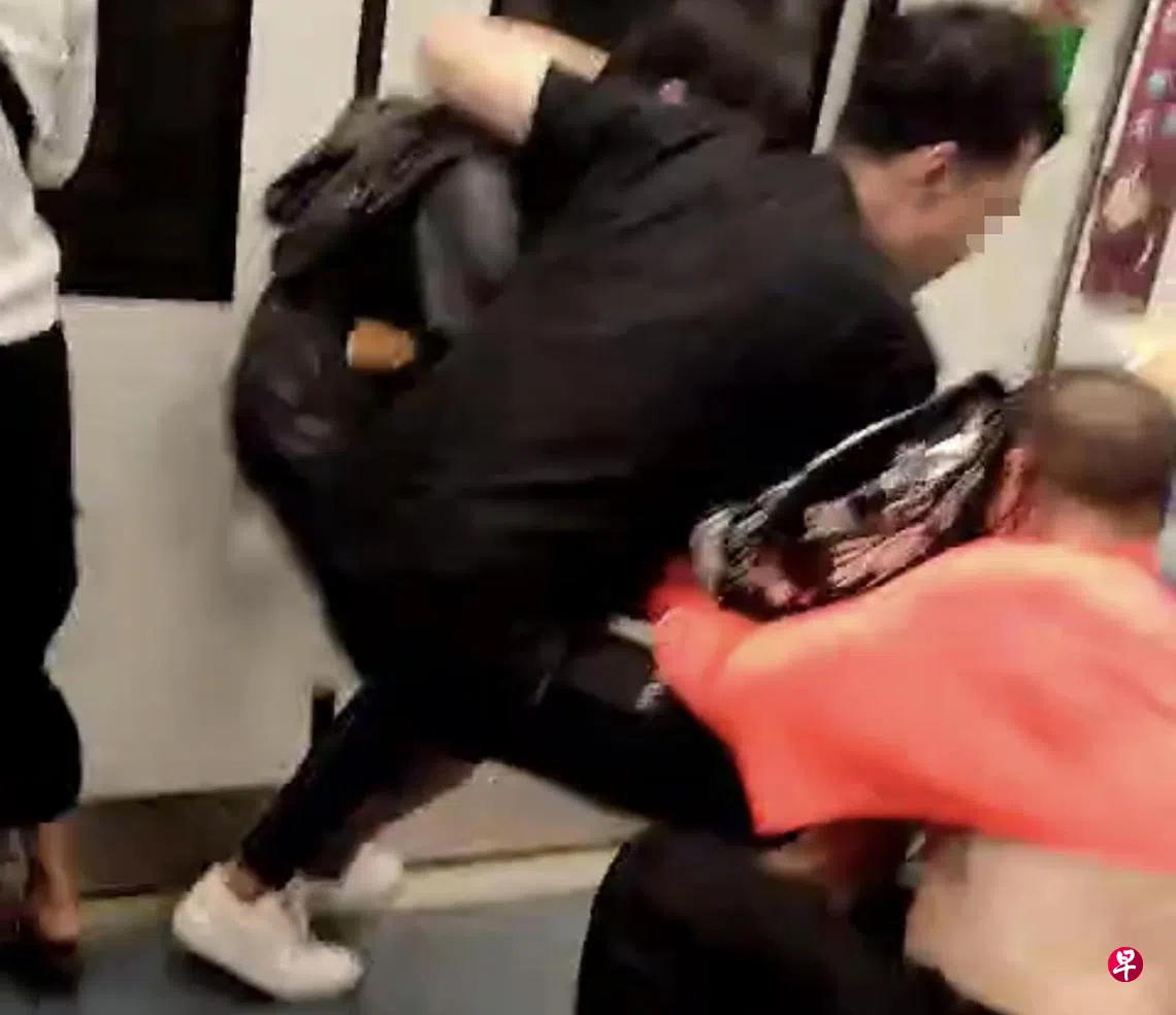 两名男子不知何故在地铁车厢内大打出手,其中一人鲜血直流,血溅车厢,吓坏乘客,更有小孩被吓哭。