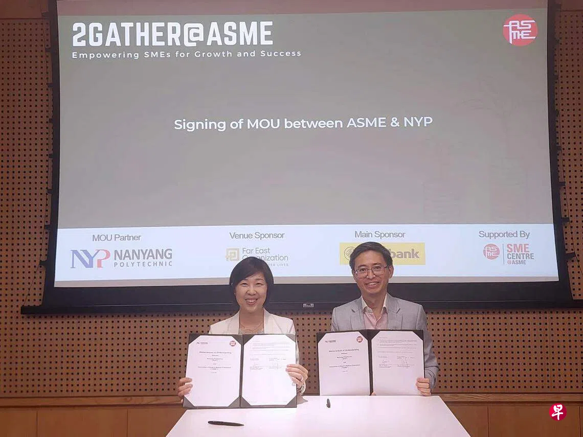 南洋理工学院与新加坡中小企业商会(ASME)星期三(6月5日)签署谅解备忘录,宣布展开为期三年的合作计划。根据计划,中小企业商会会员将获得帮助,启动可持续发展计划、推进人工智能(AI)和数码转型,以及提升网络安全能力。