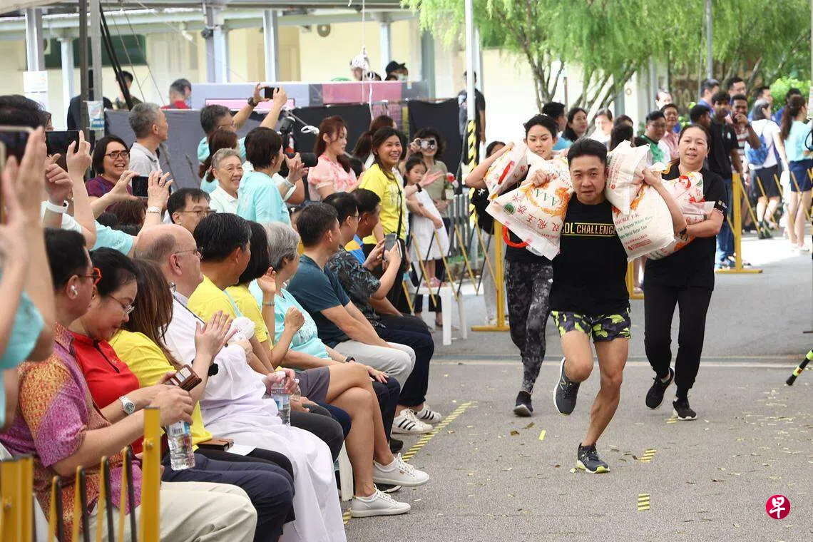 除了运米接力赛,活动现场也有企业、社区伙伴和学校等设立超过100个游戏、餐饮,以及零售摊位,全天共吸引约1万人到场支持。