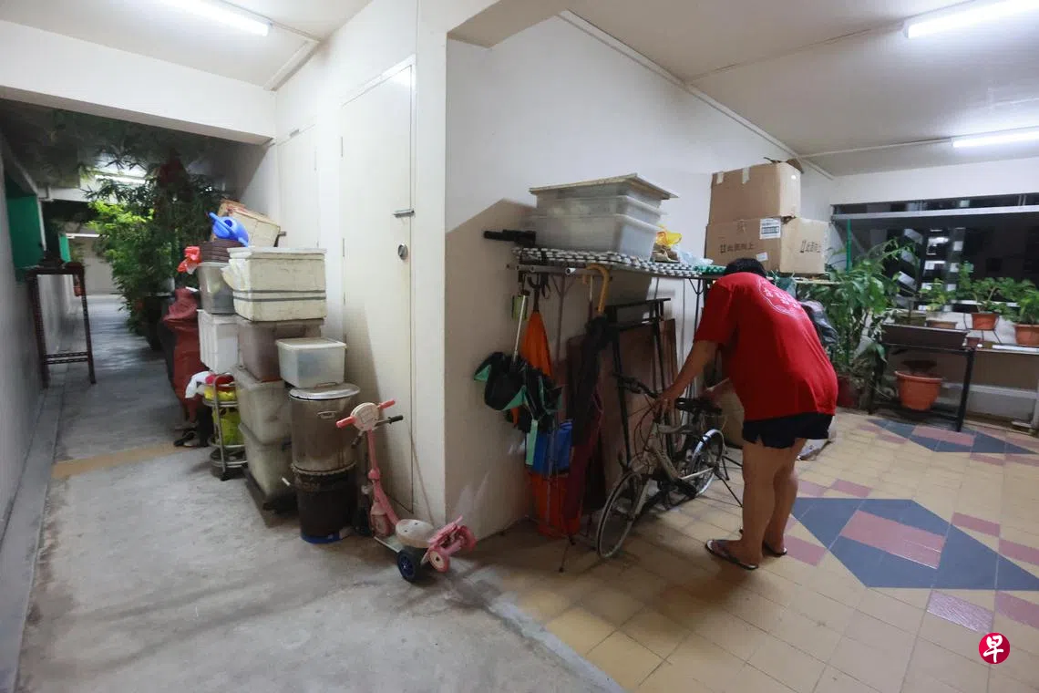 涉事处是坎贝拉路第417座组屋的10楼单位,《新明日报》记者星期六(6月8日)走访时,从电梯一出来就可看到多个盆栽、儿童踏板车、脚踏车、晒衣架、雨伞、多个纸皮箱等都堆放在电梯大厅的一侧。