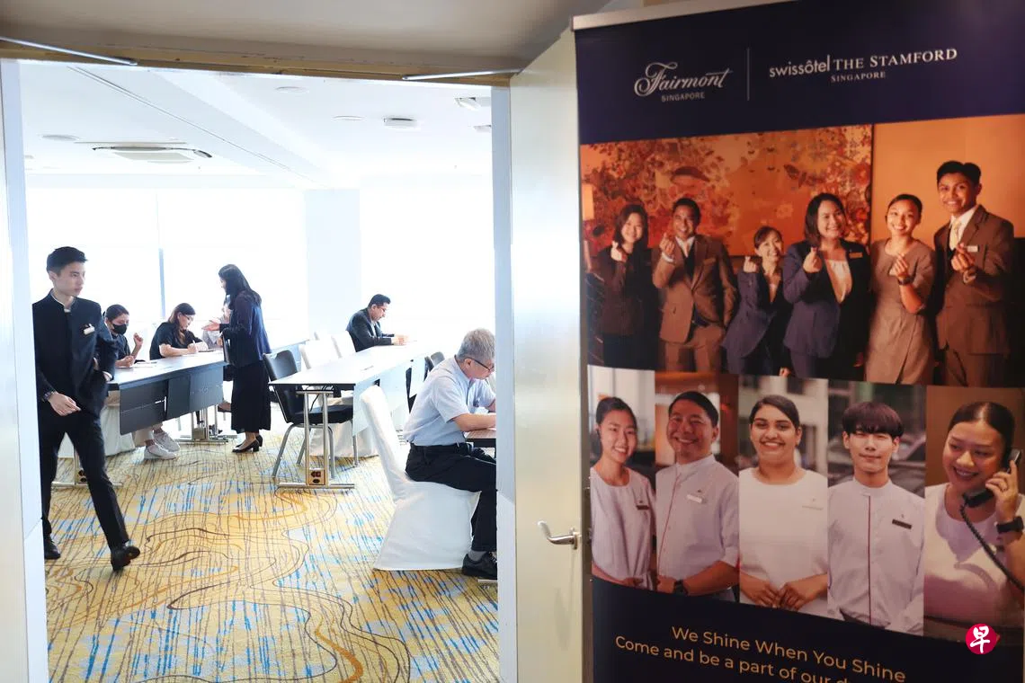 费尔蒙新加坡酒店和史丹福瑞士酒店,刚在5月举办历来规模最大的招聘活动,提供超过100份全职和合约工作,并且首次在为期两天的招聘展上推出1500元签约奖金。这个招聘展吸引了224人出席。