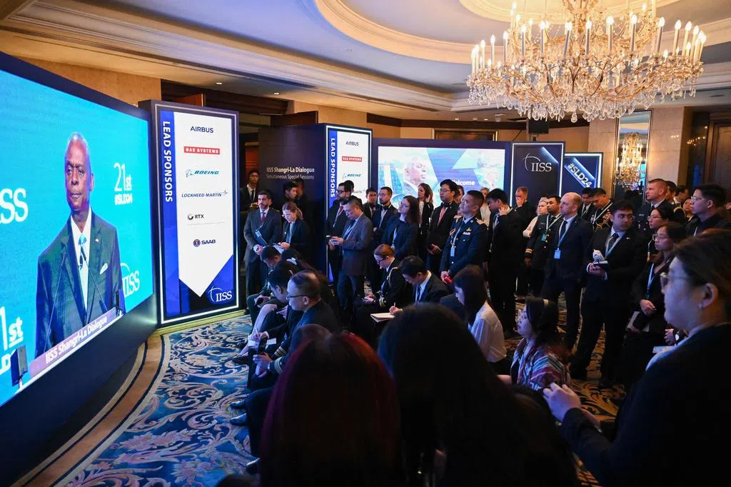 5月31日晚上,超过500名宾客聚集在新加坡香格里拉酒店岛屿宴会厅,出席第21届香格里拉对话(简称香会)开幕宴,聆听菲律宾总统小马可斯发表主旨演说。隔天一早,与会者回到同个场所,这次是为了听美国国防部长奥斯汀在首场全体会议上的讲话。