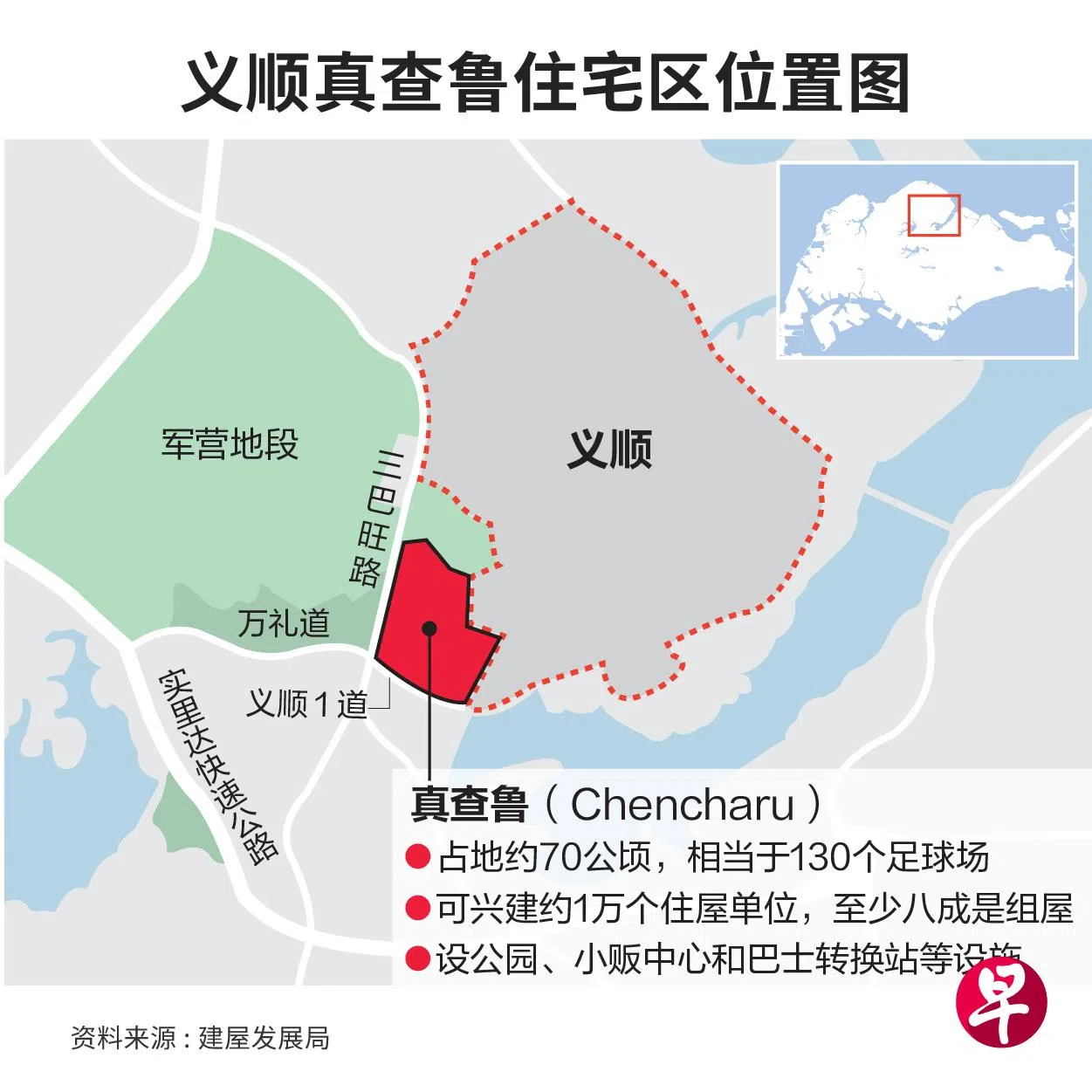 国家发展部长李智陞今年3月初在国会宣布,政府将在义顺发展新的住宅区,以满足人们的住屋需求,让更多有意住靠近父母的家庭能得偿所愿。建屋局将在2040年之前,在真查鲁兴建约1万个住屋单位,至少八成是组屋。
