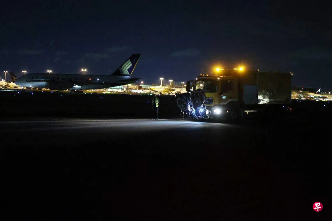 《联合早报》记者和摄影记者较早前获准进入樟宜机场的飞机跑道,观察工作人员如何维修第一条跑道。