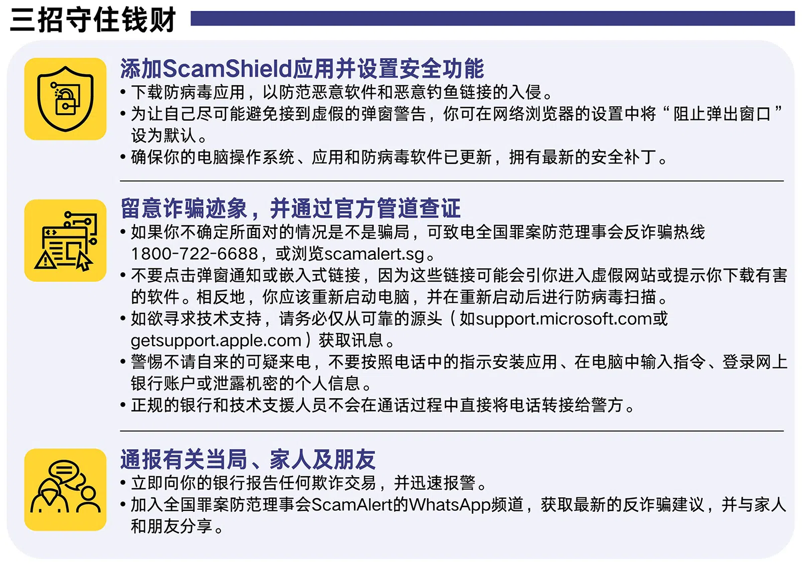 对此,微软新加坡首席安全官庄振忠说:“合法的公司通常都不会以弹窗通知的方式,在未经要求下联系用户。”
