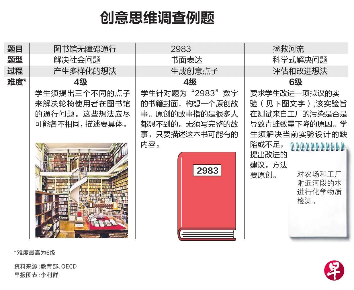 国际学生评估项目测试的是学生能否从不同的角度看问题、提供多方面的解决方案或寻求替代方案。这些都是创意思维的基本要素,通常不容易被注意到。