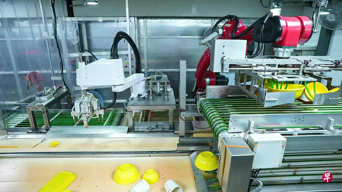 该系统由本地企业Mishima在环境局和新加坡企业发展局的联合创新征集活动下开发。系统结合了人工智能增强的视频成像、机械臂和翻转机制,使清洁工作流程更加简化,收集、分类和运输托盘及用过餐具的效率提高了约50%。