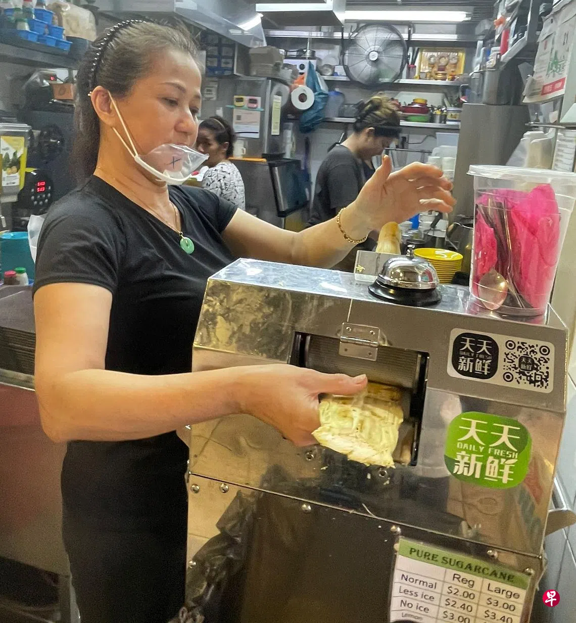 另一名摊贩刘女士主打茶水与早餐,也有为食客提供甘蔗汁。她受访时说,去年开斋节时,一箱甘蔗的价钱一度从20多元涨至约35元,当时为了应付上涨的成本,小、中、大尺寸的甘蔗汁皆起5角。