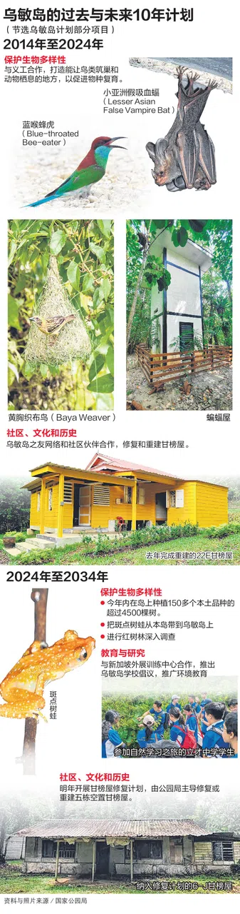 乌敏岛计划于2014年推出,以对这座纯朴的小岛进行整体规划。今年正逢计划落实10周年,国家发展部长李智陞星期六(6月22日)为一年一度的乌敏岛日致辞时,宣布小岛下个10年的发展规划,包括“甘榜屋修复计划”(Kampung House Restoration Programme)。