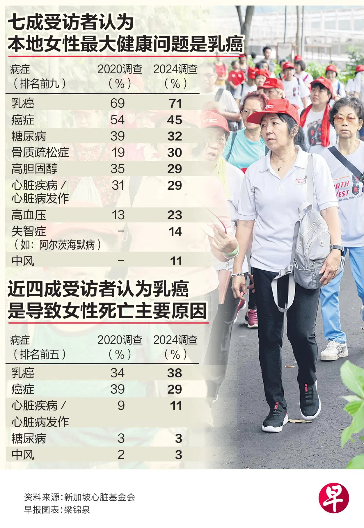 新加坡心脏基金会星期天(6月23日)发布的2024年女性心脏健康调查报告发现,仅有11%的本地女性知道心血管疾病是导致女性死亡的首要因素。