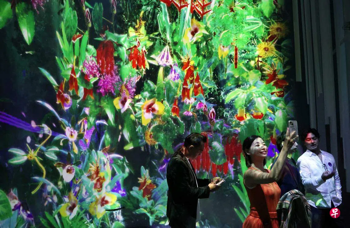 滨海湾花园推出新景点“秘境森林”,利用数码科技展现栩栩如生的云雾森林场景,呈现在人们眼前的不仅有长得像猴面的兰花,还有树懒等动植物,为访客提供沉浸式的数码艺术体验。