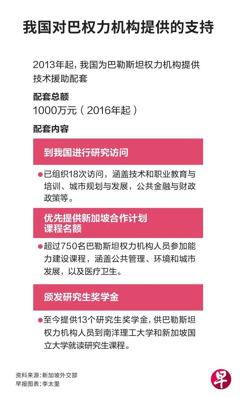 新加坡自2013年起,通过加强技术援助配套(Enhanced Technical Assistance Package,简称ETAP),协助巴勒斯坦权力机构增强能力,为最终的建国做准备。