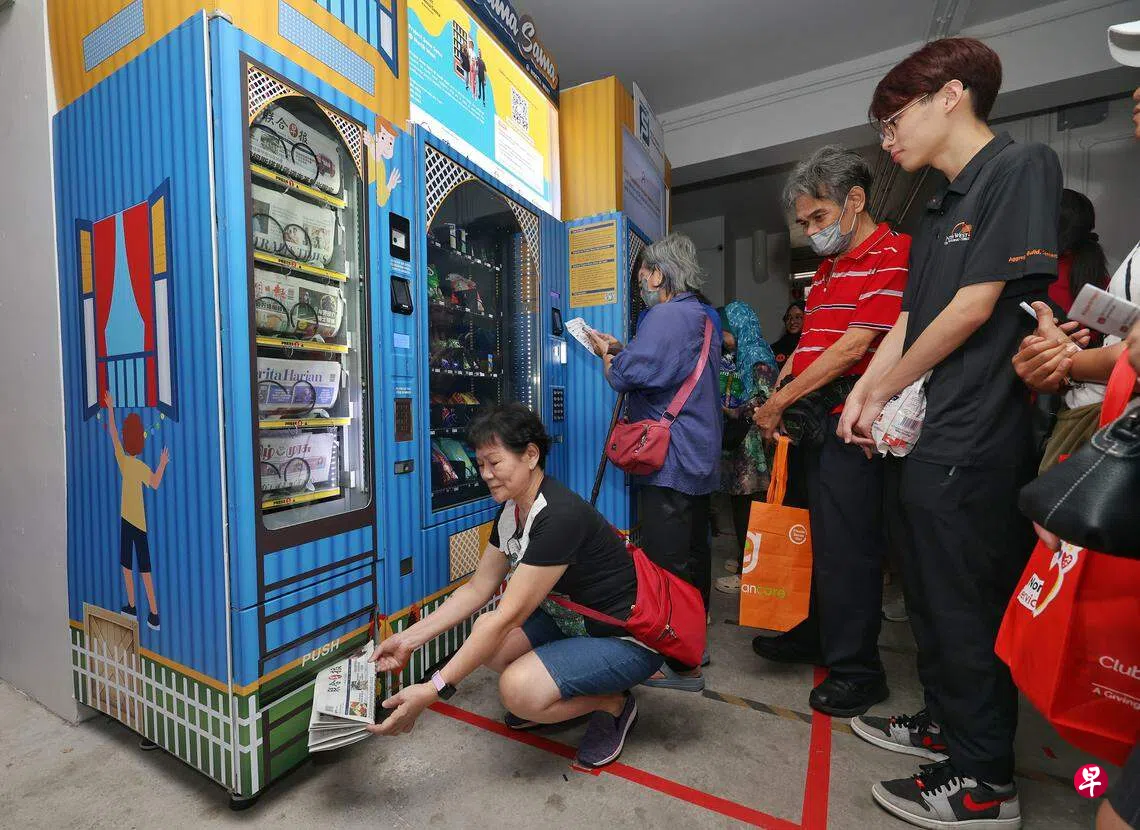 自动贩卖机将供应《联合早报》《新明日报》《海峡时报》及《每日新闻》,居民可使用积分来兑换,一般公众也能通过贩卖机购买报章。