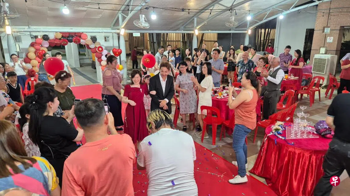 为方便家中长辈,新人选择在组屋综合亭办婚礼,筵开15桌,还邀街坊到场庆贺。