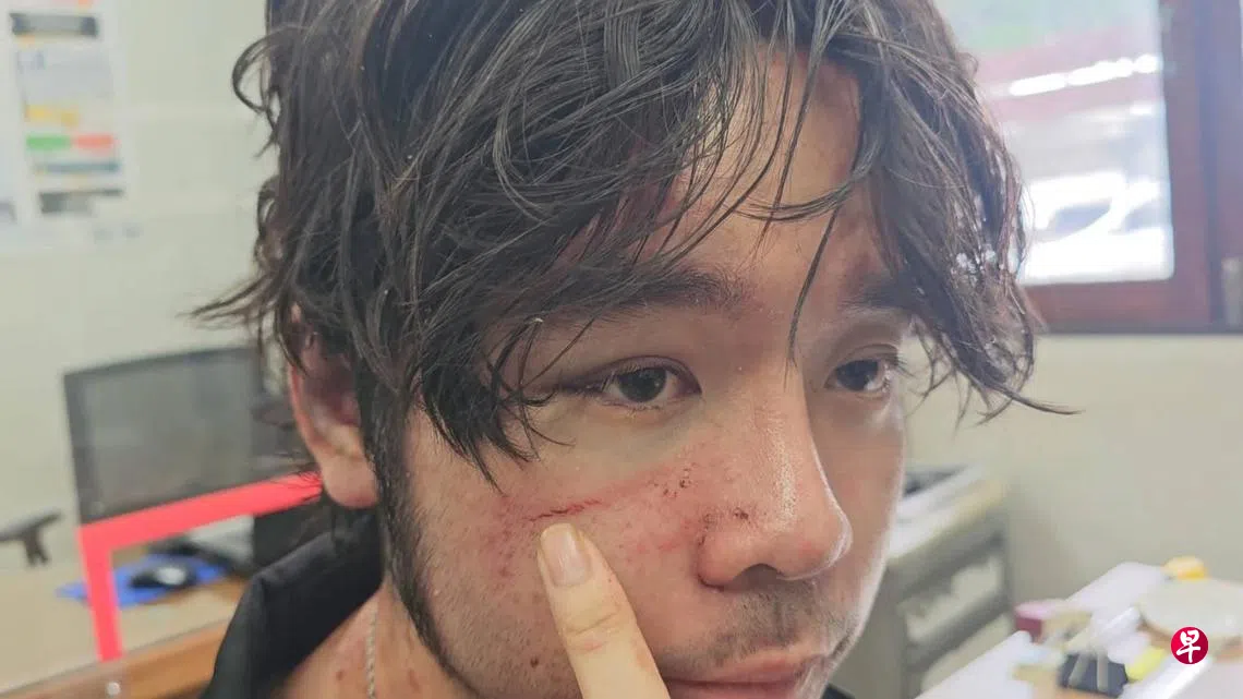 新泰混血歌手在泰国因涉及桃色风波,被一名男子打到脸青鼻肿,后脑也被打伤缝了逾10针。