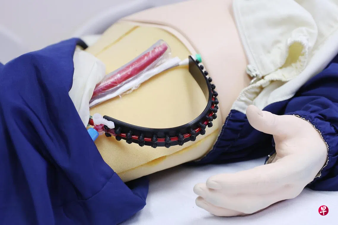 一些心肺衰竭患者在情况紧急时需接上俗称“人工心肺”的体外膜式氧合器,但在插管过程中有可能因血液流动不顺畅,导致肢体缺血。新加坡国家心脏中心研发出一款类似电线整理器的小装置,确保输血导管不弯折,从而减少下肢缺血的风险。