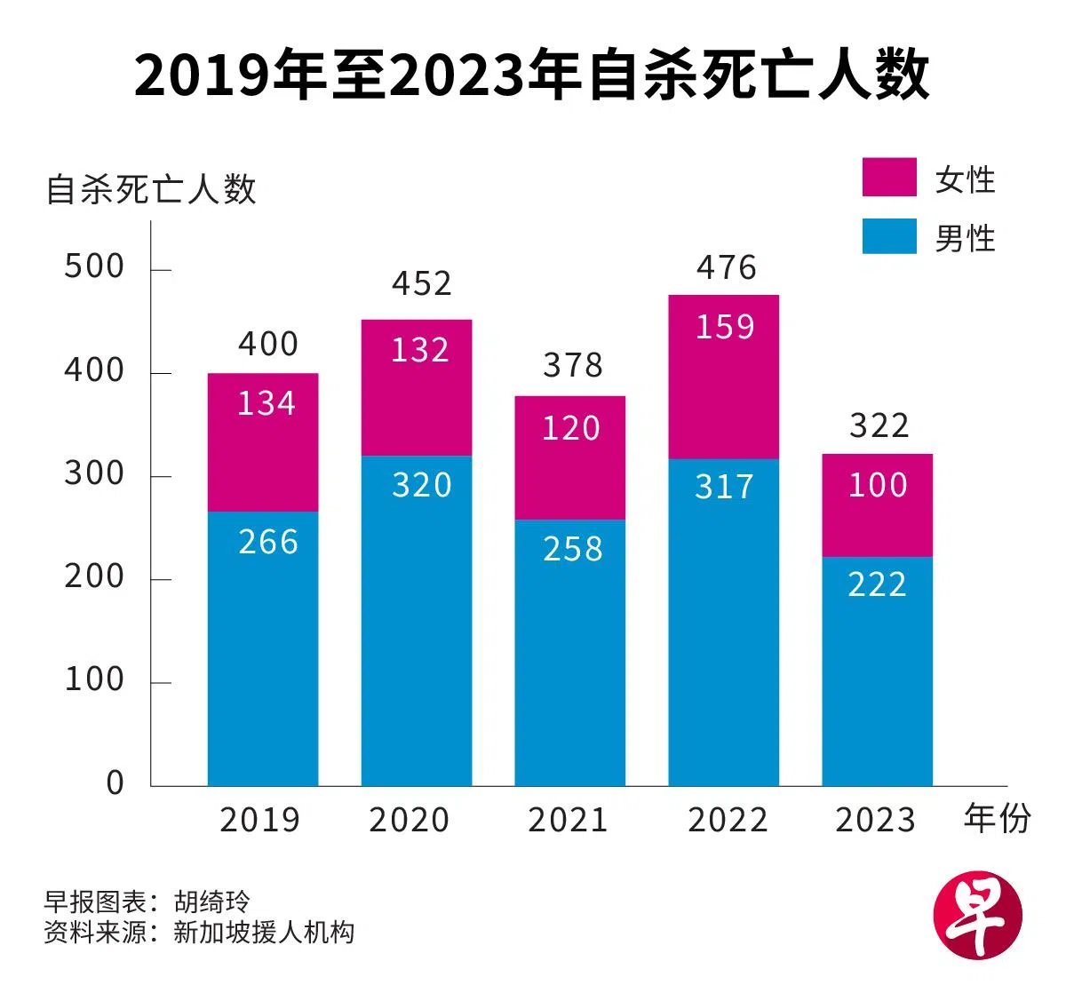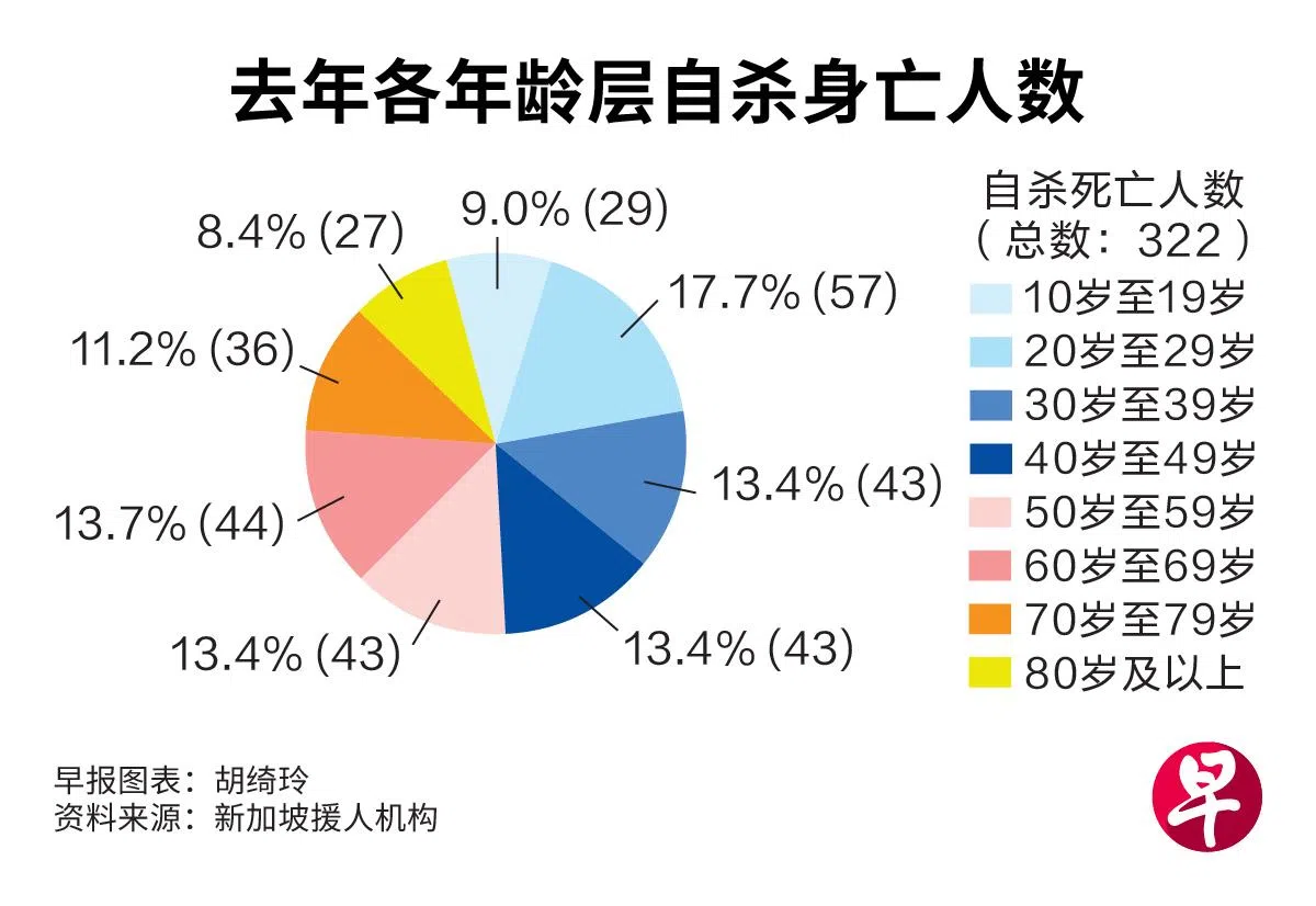 本地去年共有322人自杀身亡,比前年减少32.4%。这是自2000年开始有记录以来,自杀死亡人数最低的一年。
