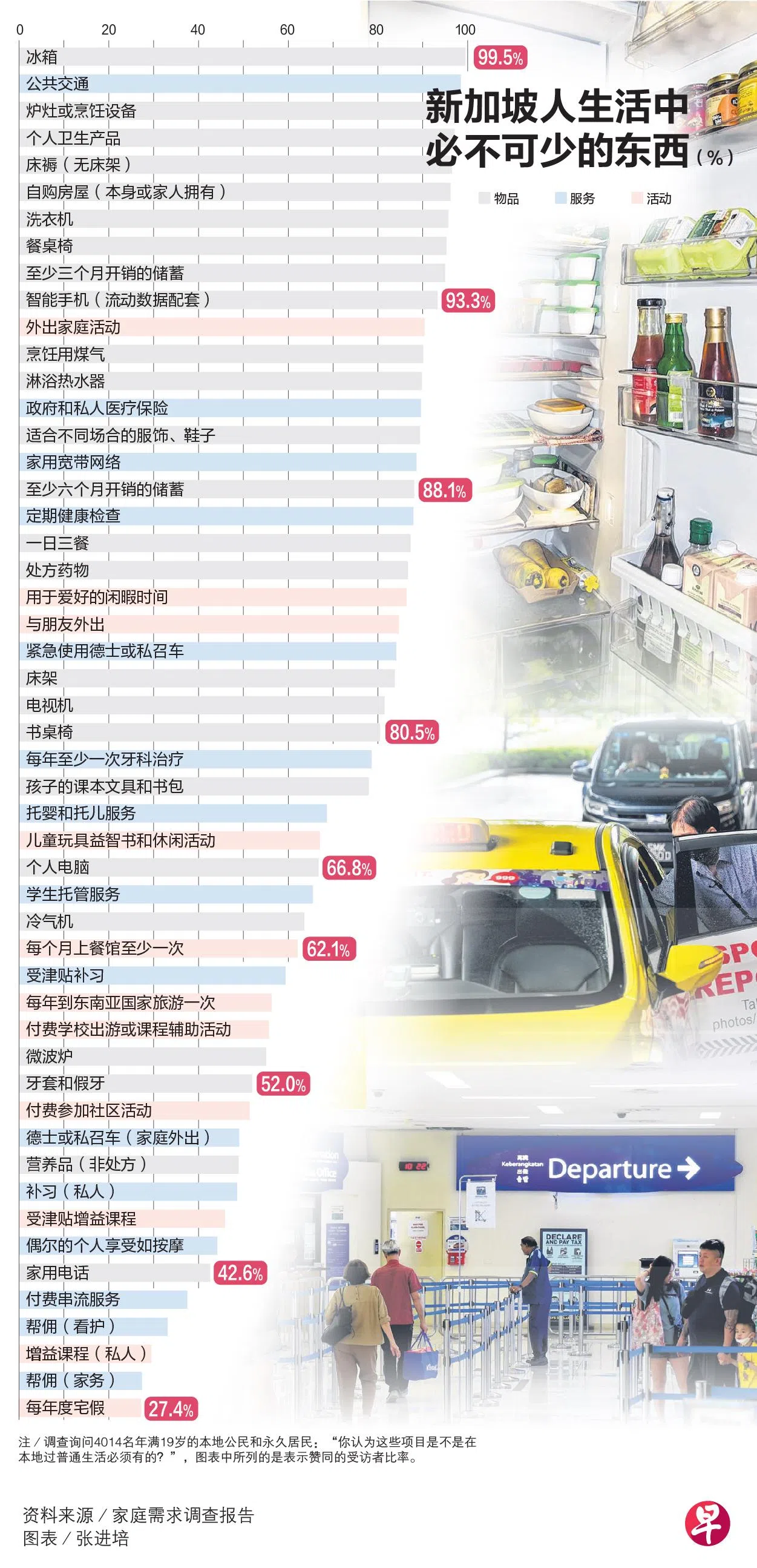 报告说:“根据经济条件和生活经历,来自最低收入群体的受访者,较不可能同意他们需要这些,才能在新加坡过上普通生活。”