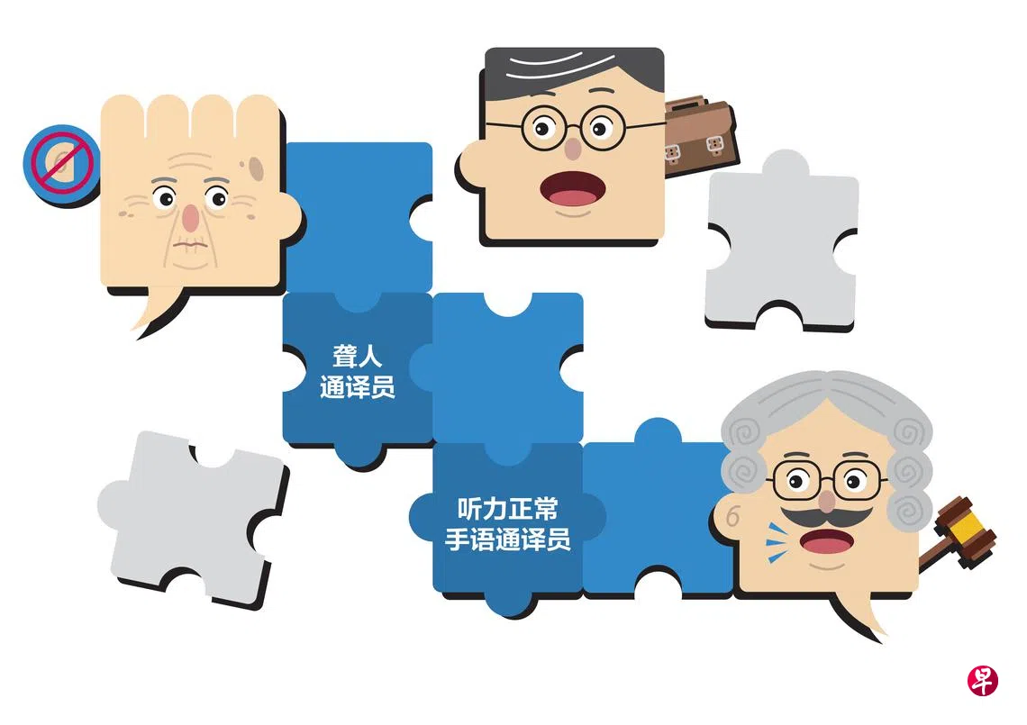 新加坡聋人协会去年提供的通译服务次数达2103次,通译员除了走入社区提供通译服务,也到法院帮助不会英文英语、通过手语表达的被告,让他们有办法与法官和律师沟通。