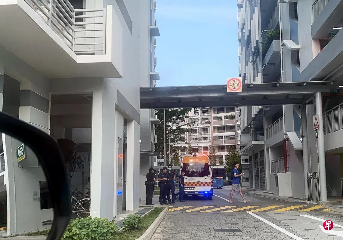《联合早报》读者在事发后途经事发地点,看见路边停着一辆救护车和两辆警车。到了晚上约7时30分,至少四名警员在停车场附近的组屋楼下查看电眼画面。