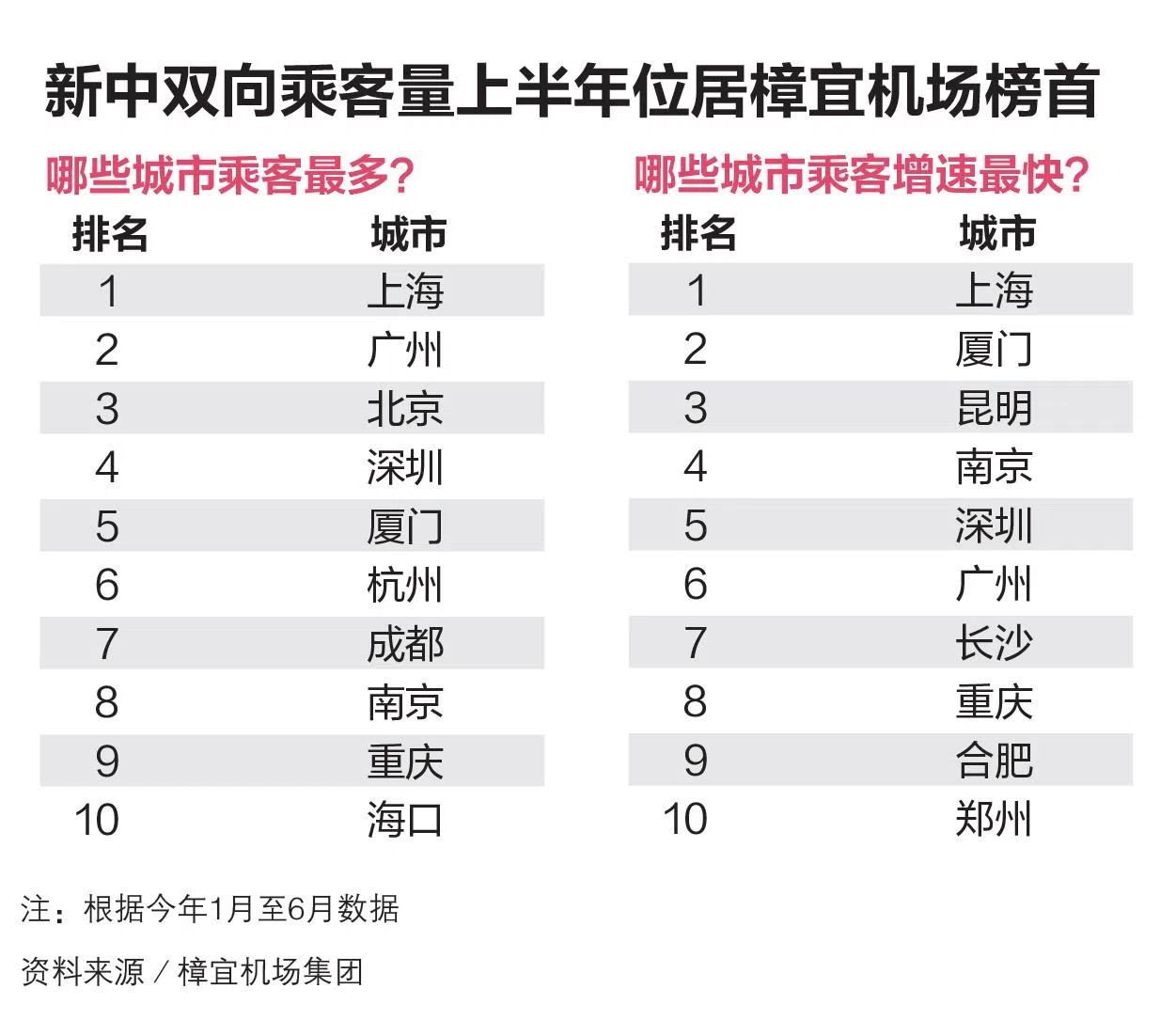 至于期间增长最快的城市,若根据乘客人次,上海的增长最快,其次是厦门、昆明、南京和深圳。当中,往返新加坡和上海的乘客量已经突破100万人次。2019年同期,往返新加坡和上海的乘客量约82万人次。