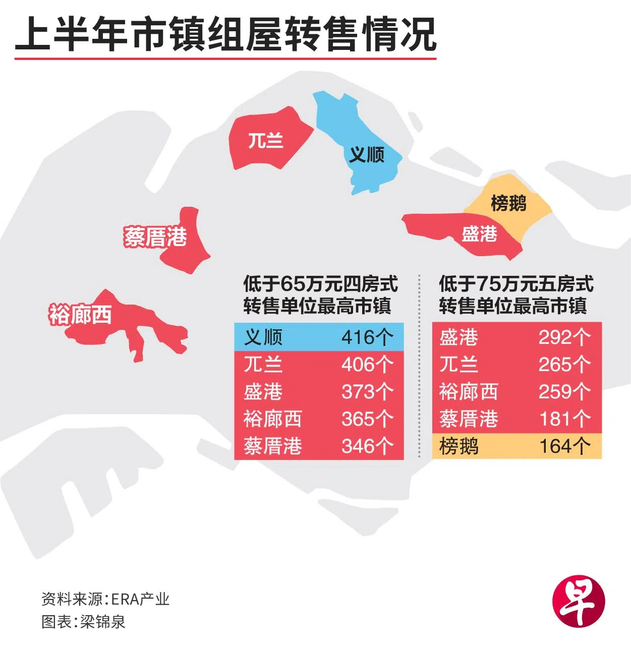 义顺、兀兰和盛港有最多以低于65万元易手的四房式单位,数量都在400个上下。淡滨尼、勿洛和白沙这三个成熟市镇,也有不少四房式单位以低于65万元的价格出售,分别为277个、144个和113个;这些单位大多有至少35年屋龄。
