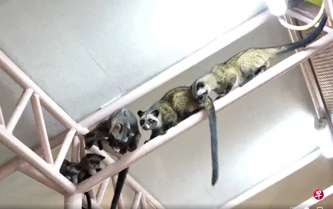 红山组屋区惊现两窝果子狸,以有盖走道天花板为家,吸引居民和摄影师“拜访”,甚至有人制作“狸踪”地点图,守株待兔拍下全家福。